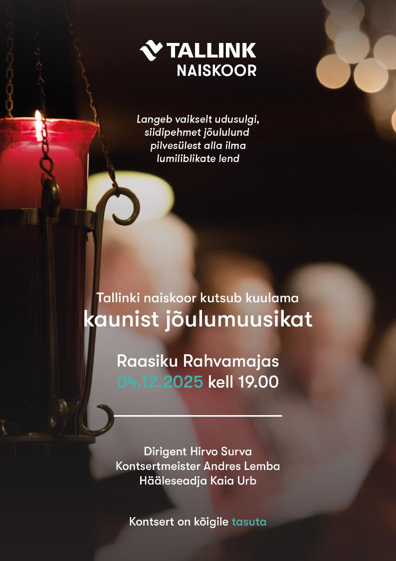 TALLINKI NAISKOORI KONTSERT+ Add to Google Calendar+ iCal / Outlook export Date04 Dec 2025Expired! Time 19:00 - 20:00Järgmised üritused: CategoryEsitlusFilmKOGUPEREKontserdidNäitusedNoortekeskuse tegemisedõpitubaPiduspordivõistlusTeatertrennvaria March 2026 Mar 05 2026TEEAEDADE TEGIJATE ESIMENE KOHTUMINE Mar 07 2026TANTSULINE KONTSERT Mar 08 2026MINIDISCO vanusele 1-10 Mar 10 2026PILATESE TRENN Mar 12 2026KAASAVA EELARVE IDEELABOR Mar 15 2026Kiili harrastusteatri etendus Mar 21 - 22TANTSUÕHTU ANSAMBLIGA HELLAD VELLED No event found!